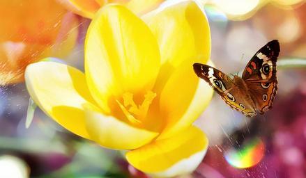 Keywords: crocus flower spring flower blossom bloom yellow butterfly fantasy close