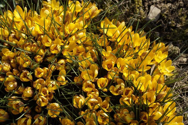 Keywords: crocus garden end of winter early bloomer spring yellow plant flower nature blossom bloom spring crocus harbinger of spring frühlingsanfang springtime spring flower mass quantitative many beautiful frühlingsblüher bloom bright