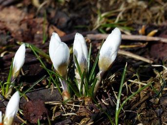 Keywords: crocus white flower bloom blossom bloom forest floor spring harbinger of spring nature schwertliliengewaechs spring crocus flora
