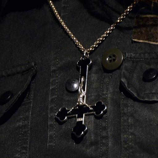 | Keywords: Croix renversée Black Metal 07032015.jpg  fr Une croix renversé portée sur scène par un musicien de Black Metal en An inverted Christian cross worn by a Black Metal musician while he's performing on stage 2015-03-07 21 33 37 own Vassil other versions cc-zero Uploaded with UploadWizard Inverted Christian cross |