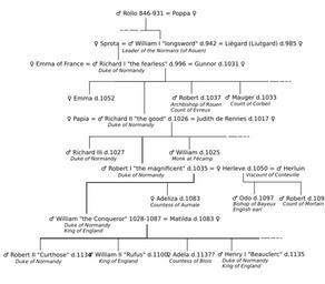| Keywords: Cronological tree William I - text.svg Genealogy of William the conqueror back up to Rollo The text version of the diagram already existing on wikipedia now we can translate it to other languages Cronological_tree_william_I svg 2011-07-06 08 40 UTC LadyofHats derivative work Green fr <span class signature-talk >talk</span> Text version for translations green_fr Cronological_tree_william_I svg LadyofHats Original upload log This image is a derivative work of the following images File Cronological_tree_william_I svg licensed with PD-user 2007-07-15T19 37 35Z Zscout370 664x582 519650 Bytes <nowiki>This should fix the rendering issues</nowiki> 2007-06-05T09 59 55Z LadyofHats 664x582 354950 Bytes <nowiki>the svg doesnt show</nowiki> 2007-06-05T09 54 01Z LadyofHats 664x582 354860 Bytes <nowiki>changed some titles i got corrected in a mail</nowiki> 2006-04-05T18 20 47Z LadyofHats 664x582 256785 Bytes <nowiki>i had to modify the image becouse of the svg format overlaped the text with the symbols here is a second try by the way the sources are still wikipedia and this website http //sbaldw home mindspring com/ </nowiki> 2006-04-05T18 13 55Z LadyofHats 664x582 16674 Bytes <nowiki>Genealogy of William the conqueror back up to Rollo the diagram i amde with the information content on wikipedia and with that i found here </nowiki> Uploaded with derivativeFX Family trees of England Normans Family trees of the royalty of the United Kingdom |