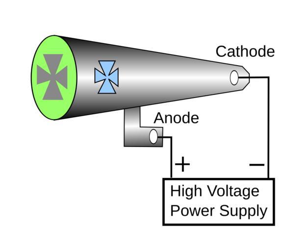 Keywords: Crookes tube2 diagram.svg Schematic diagram of a Crookes tube This was a cold cathode discharge tube invented by William Crookes and other physicists around the 1870s in which cathode rays electrons were discovered It consisted of a partially evacuated glass tube with two electrodes When a high potential of several thousand volts is applied between the electrodes cathode rays are emitted by the negative electrode right and travel in straight lines through the tube When they hit the glass wall of the tube left they cause it to glow or fluoresce In this common example a metal cross is placed in the tube in front of the cathode which blocks the rays The shadow it throws on the glowing back wall demonstrates that the cathode rays travel in parallel lines Ein Schemendiagramm einer Schattenkreuzröhre own work by Chetvorno and rebuilt by Drondent <br/><small>http //en wikipedia org/wiki/Image Crookes_tube2_diagram svg english Wikipedia </small> created on 2008-03-05 updated on 2008-09-12 <br/><small>uploaded on 2008-12-10</small> created by Chetvorno rebuilt by Drondent Chetvorno Image Crookes tube diagram svg shows an alternate version where the cross serves as the anode Files uploaded by D-Kuru Crookes tube ẩ |