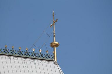 Keywords: cross gold roof cologne cathedral building believe historically facade sky blue sky architecture downtown old germany christianity church