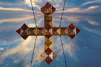 Keywords: cross jesus precious christ gold red blue sky sea resurrection faith christianity god jesus christ religion holy christian meditation mirroring