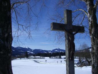 Keywords: cross stone cross winter snow mountain panorama sky blue allgäu frisch fromm cheerful free
