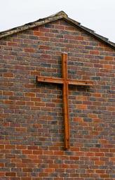 Keywords: cross wood wooden brick wall brickwall background brick symbol icon religion religious