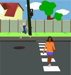 Keywords: crossing crosswalk fence jogging manhole neighborhood pedestrian road sewer sidewalk street walk walking