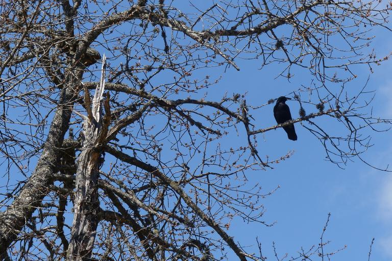 Keywords: crow aesthetic apple tree kahl defoliated bird black