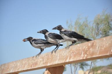Keywords: crow raven rook nature black bird animal outdoors beak natural wing grass green blackbird three