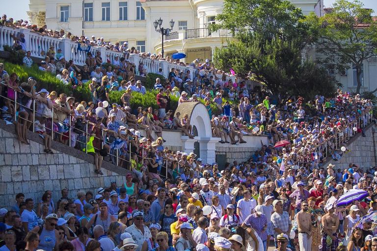 Keywords: crowd pandemonium onlookers audience crimea summer sevastopol people many people stir