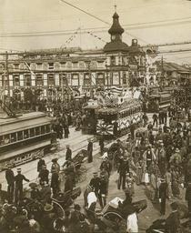| Keywords: Crowded Tokyo Street 1905.jpg en Crowded Tokyo Street Japan by Underwood Underwood ca 1905 LOC ja 乃 希典将軍凱旋の の様子 http //www flickr com/photos/pingnews/509296962/ Public Domain Suggested credit Underwood/Library of Congress VIA PINGNEWS Additional information from source TITLE Crowds on a Tokyo street near the train station during the celebration of Admiral Togo's visit in Oct 1905 CALL NUMBER LOT 3372 no 90 P P Check for an online group record may link to related items REPRODUCTION NUMBER LC-DIG-ppmsca-08013 digital file from original photograph No known restrictions on publication No renewal in Copyright office MEDIUM 1 photographic print stereograph CREATED/PUBLISHED New York N Y Underwood Underwood c1905 CREATOR Underwood Underwood publisher NOTES H69070 U S Copyright Office Copyright by Underwood Underwood Nov 23 1905 Title devised by Library staff SUBJECTS Russo-Japanese War 1904-1905--Peace--Japan--Tokyo Victory celebrations--Japan--Tokyo--1900-1910 Street railroads--Japan--Tokyo--1900-1910 FORMAT Stereographs 1900-1910 Photographic prints 1900-1910 REPOSITORY Library of Congress Prints and Photographs Division Washington D C 20540 USA DIGITAL ID digital file from original photograph ppmsca 08013 http //hdl loc gov/loc pnp/ppmsca 08013 hdl loc gov/loc pnp/ppmsca 08013 CARD 2005678640 1905-11-23 Underwood Underwood publisher Public Domain PD-Japan-oldphoto Trams in Tokyo Japan in the 1900s 1905 in Tokyo Party trams |