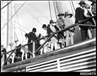 | Keywords: samuel j hood collection samueljhoodcollection hood collection hoodcollection hood naval vessel navalvessel navy royal australian navy royalaustraliannavy hmas australia ii hmasaustraliaii australia australian navy australiannavy inspection crowds blackandwhite monochrome photo border outdoor black and white This photograph depicts crowds admiring the Royal Australian Navy's cruiser HMAS AUSTRALIA II at wharf 2 in Circular Quay, Sydney. A newspaper article describes the scene: 'Several thousand people visited the cruiser AUSTRALIA at No. 2 wharf, Circular Quay, yesterday afternoon, where she was thrown open for inspection for the first time. The inspections will be continued this afternoon, tomorrow afternoon, and on Sunday, Monday and Tuesday afternoons.' ('H.M.A.S. AUSTRALIA - Inspected by Large Crowds', The Sydney Morning Herald, Friday 26 October 1928, p 14). This photo is part of the Australian National Maritime Museum’s Samuel J. Hood Studio collection. Sam Hood (1872-1953) was a Sydney photographer with a passion for ships. His 60-year career spanned the romantic age of sail and two world wars. The photos in the collection were taken mainly in Sydney and Newcastle during the first half of the 20th century. The ANMM undertakes research and accepts public comments that enhance the information we hold about images in our collection. This record has been updated accordingly. Photographer: Samuel J. Hood Studio Collection Object no. 00024979 This photograph depicts crowds admiring the Royal Australian Navy's cruiser HMAS AUSTRALIA II at wharf 2 in Circular Quay, Sydney. A newspaper article describes the scene: 'Several thousand people visited the cruiser AUSTRALIA at No. 2 wharf, Circular Quay, yesterday afternoon, where she was thrown open for inspection for the first time. The inspections will be continued this afternoon, tomorrow afternoon, and on Sunday, Monday and Tuesday afternoons.' ('H.M.A.S. AUSTRALIA - Inspected by Large Crowds', The Sydney Morning Herald, Friday 26 October 1928, p 14). This photo is part of the Australian National Maritime Museum’s Samuel J. Hood Studio collection. Sam Hood (1872-1953) was a Sydney photographer with a passion for ships. His 60-year career spanned the romantic age of sail and two world wars. The photos in the collection were taken mainly in Sydney and Newcastle during the first half of the 20th century. The ANMM undertakes research and accepts public comments that enhance the information we hold about images in our collection. This record has been updated accordingly. Photographer: Samuel J. Hood Studio Collection Object no. 00024979 |