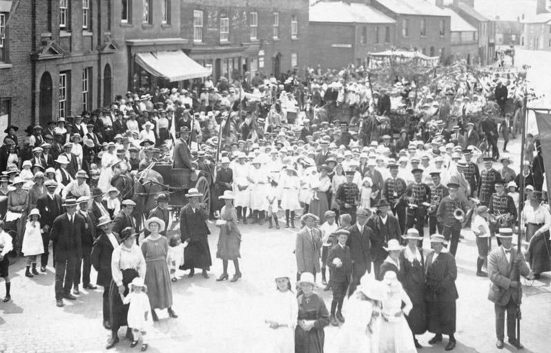 Keywords: Crowland United Sunday Schools' Treat 1921.jpg en United Sunday Schools' Treat in 1921 in Crowland Lincolnshire England Processions were common in English villages the day after a particular Sunday church service and were red letter days in the Methodist calendar Children and adults generally marched separately singing hymns accompanied by bands banners and tableau this ending at a location often a local farm or significant business where the children would sit for a special tea The aim was to collect donations to support the work of local Methodism 2015-03-15 02 54 08 Vintage postcard unknown photographer other versions PD-old-70-1923 Uploaded with UploadWizard Postcards of Lincolnshire Events in Lincolnshire Processions in England Streets in Lincolnshire Crowland Lincolnshire in the 1900s Social gatherings Parades in England Black and white photographs of parades |