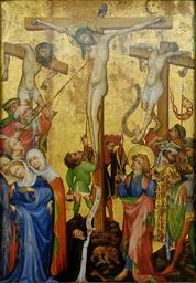 | Keywords: Crucifixion Strasbourg Unterlinden Inv88RP536.jpg Artwork LangSwitch Straßburger Maler A Strasburgian painter Peintre strasbourgeois Hermann Schadeberg Crucifixion 1410 1415 Oil coniferous wood cm 126 87 Institution Unterlinden http //www musee-unterlinden com/kreuzigung html searched crucifixion advsearch oneword highlight ajaxSearch_highlight+ajaxSearch_highlight1 musee-unterlinden Kreuzigung http //www musee-unterlinden com/assets/files/ServiceEduc/ServiceEducatif/FichesPedagogiques/ParcoursVoyageMoyen_Age/Fiches_Unterlinden/FichesEnseignant/Kreuzigung_Lehrer_Blatt_Drucken pdf musee-unterlinden Kreuzigung Lehrer Blatt object history Holztafel aus dem St Martinsmünster zu Colmar credit line Old fund accession number Inv 88 RP 536 Marie-Lan Nguyen 2009 other versions <gallery>File Oberrheinischer Meister um 1400 001 jpg</gallery> PD-old-100-1923 DEFAULTSORT Anonymous; Crucifixion; 1410 1415 15th-century unidentified painters Crucifixion; 1420 circa Paintings in the Musée d'Unterlinden 15th-century paintings in Alsace German paintings in France 1410s paintings from Germany 15th-century paintings of the Crucifixion of Christ Anonymous; 1420 circa Jesus Christ between the felons Gothic paintings in Colmar Gothic paintings of Crucifixion of Christ Anonymous; 1420 circa Holy Lance Tempera on panel Fainting Virgin Mary Paintings of Crucifixion of Christ in France SPQR Donor portraits with Crucifixion Ornamental textiles in art 15th-century religious paintings in France 1410s paintings in France |