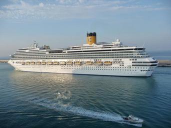 Keywords: cruise ship costa sea journey tour vacation luxury view side water blue sky day deck port