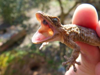 Keywords: cry open mouth gecko lizard reptile detail hand