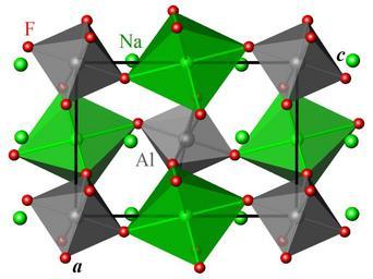 | Keywords: Cryolite RT ac.png en Polyhedral representation of the room temperature crystal structure of cryolite Na3AlF6 space group P21/n No 14 P21/c with different cell setting projected onto the a c plane Gray aluminium atoms green sodium atoms red fluorine atoms own Perditax 2010-09-01 cc-zero Crystal structures in space group number 14 Cryolite |