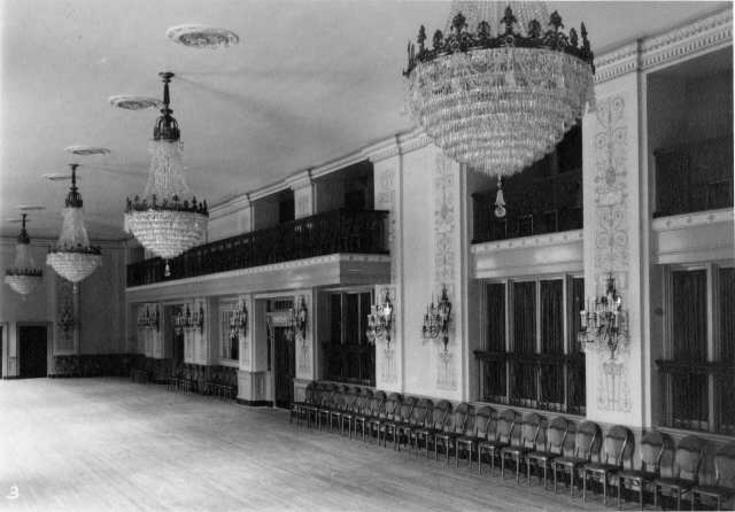 | Keywords: Crystal Ballroom, Hotel Winthrop.jpg  en Four sparkling chandeliers of Austrian cut crystal hand-cut and hand-polished and weighing approximately 600 pounds apiece gave the ballroom its name ~ 1925 https //www tacomalibrary org/blogs/post/crystal-ballroom-hotel-winthrop-c-1925/ Mezzo Portrait Studio other versions Located up a half flight of stairs from the lobby the Crystal Ballroom remains largely unchanged in the 21st century from its heyday of the 1920's It had one of the three hardwood floors in the entire hotel and was the scene of many dances and conferences Four sparkling chandeliers of Austrian cut crystal hand-cut and hand-polished and weighing approximately 600 pounds apiece gave the ballroom its name 26 scounces draped with crystals decorated the walls The 38x120-foot ballroom was dressed in French tints of blue and rose with its panels in relief designs composed of pastel colors cc-zero Tacoma Public Library |
