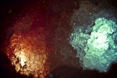 Keywords: crystal cave red orange turquoise gems macro macro photo geology gloss dark light contrast mineral pointed green reflection transparent mystical secret
