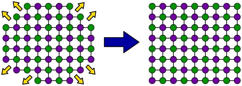 | Keywords: Crystal facet formation.svg en Schematic illustration of why crystals have smooth faces The rough edges have a lot of dangling bonds which new atoms can easily bond to as the crystal grows The smooth planes with low surface energy and usually low Miller index have fewer dangling bonds and new atoms cannot easily attach so these planes grow outwards more slowly Eventually you end up with the whole surface being smooth planes This cartoon is supposed to represent of cross-section of halite Purple circles are sodium ions green circles are chloride ions Image is inspired by a similar one at http //www its caltech edu/~atomic/snowcrystals/faceting/faceting htm 2011-11-22 own Sbyrnes321 cc-zero Uploaded with UploadWizard Crystal structure of sodium chloride Crystallization Checkered SVG physics 8x9 arrays |