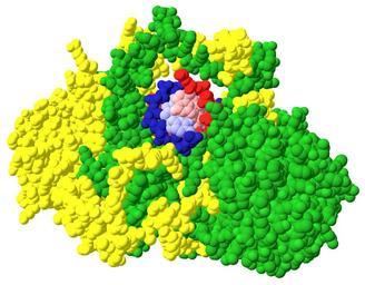 | Keywords: Crystal Structure of the Ku Heterodimer - 23.png All beta proteins SPOC domain-like SPOC domain-like Ku70 subunit middle domain Ku70 subunit middle domain Alpha and beta proteins a or b vWA-like vWA-like Ku70 subunit N-terminal domain Ku70 subunit N-terminal domain All beta proteins SPOC domain-like SPOC domain-like Ku80 subunit middle domain Ku80 subunit middle domain Alpha and beta proteins a or b vWA-like vWA-like Ku80 subunit N-terminal domain Ku80 subunit N-terminal domain pl Heterodimer ludzkiego białka Ku przyłączony do nici DNA Ku70 zaznaczono kolorem zielonym Ku80 - żółtym a łańcuchy DNA - czerwonym i niebieskim Do wizualizacji danych krystalograficznych z pliku PDB 1JEY http //www rcsb org/pdb/explore/explore do pdbId 1JEY użyto programu Swiss-PDBViewer 4 0 1 en Human Ku heterodimer protein attached to DNA Ku70 is marked green Ku80 - yellow and the chains of DNA - the red and blue Crystallographic data visualization of the PDB file 1JEY http //www rcsb org/pdb/explore/explore do pdbId 1JEY used the Swiss-PDBViewer 4 0 1 Own 2009-12-21 User Karol007/signature Own work all rights released Public domain Ku protein |