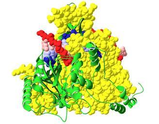 | Keywords: Crystal Structure of the Ku Heterodimer - 26.png All beta proteins SPOC domain-like SPOC domain-like Ku70 subunit middle domain Ku70 subunit middle domain Alpha and beta proteins a or b vWA-like vWA-like Ku70 subunit N-terminal domain Ku70 subunit N-terminal domain All beta proteins SPOC domain-like SPOC domain-like Ku80 subunit middle domain Ku80 subunit middle domain Alpha and beta proteins a or b vWA-like vWA-like Ku80 subunit N-terminal domain Ku80 subunit N-terminal domain pl Heterodimer ludzkiego białka Ku przyłączony do nici DNA Ku70 zaznaczono kolorem zielonym Ku80 - żółtym a łańcuchy DNA - czerwonym i niebieskim Do wizualizacji danych krystalograficznych z pliku PDB 1JEY http //www rcsb org/pdb/explore/explore do pdbId 1JEY użyto programu Swiss-PDBViewer 4 0 1 en Human Ku heterodimer protein attached to DNA Ku70 is marked green Ku80 - yellow and the chains of DNA - the red and blue Crystallographic data visualization of the PDB file 1JEY http //www rcsb org/pdb/explore/explore do pdbId 1JEY used the Swiss-PDBViewer 4 0 1 Own 2009-12-21 User Karol007/signature Own work all rights released Public domain Ku protein |