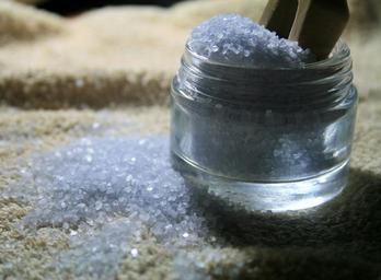 Keywords: crystals aromatic lavender light purple bath scoop
