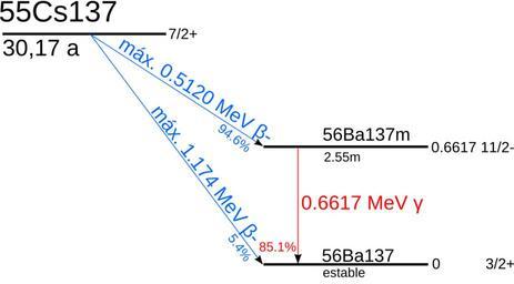 Keywords: Cs-137-decay-gl.svg gl Esquema do decaemento do Cesio 2015-12-21 own user banjo/myimages other versions Cs-137-decay svg cc0 Caesium-137 Uploaded with UploadWizard