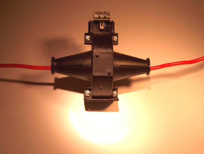Keywords: Csdc400.jpg Current sensor for +- 400 A DC with hallsensor producer Tiemann / Germany 2006-04-28 own assumed Redecke~commonswiki Electronic components Hall sensors