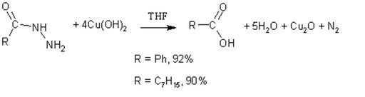 | Keywords: Cu(OH)2 CarboxylicAcidCatalyst.PNG Created with ACD/Chem Sketch Freeware Describes the synthesis of carboxylic acids from acid hydrazides with the use of copper hydroxide 2007-07-03 en wikipedia SreeBot Chris Barile at en wikipedia other versions Chris Barile Original upload log page en wikipedia Cu OH 2_CarboxylicAcidCatalyst PNG Upload date User Bytes Dimensions Comment 2007-11-01 11 14 UTC Chris Barile 4824 bytes 468×124 <small><nowiki>Updated version with the correct structure </nowiki></small> 2007-07-03 05 28 UTC Chris Barile 4785 bytes 450×115 <small><nowiki>Created with ACD/Chem Sketch Freeware Describes the synthesis of carboxylic acids from acid hydrazides with the use of copper hydroxide </nowiki></small> Copper II hydroxide |