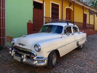 Keywords: cuba trinidad city architecture color colorful caribbean tropics human home oldtimer american car white classic
