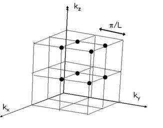 Keywords: Cubic reticle in k space.png Otto soluzioni nello spazio k di una scatola cubica a 3 dimensioni di lato L Own Pasquale Carelli Simple cubic lattices