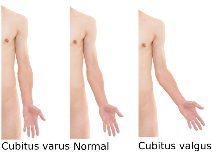 Keywords: Cubitus varus and cubitus valgus.svg Cubitus varus and cubitus valgus own using File Anterior view of human male retouched jpg Mikael Häggström 2012-08-20 thumb left png-format Cc-zero Orthopedics Valgus deformity Varus deformity