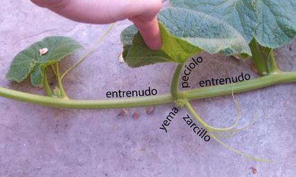 | Keywords: Cucurbitaceae - typical vine plant internodes petiole bud tendril around a node spanish labels.svg es Típica planta de guía de cucurbitácea a diferencia de la planta de tronco o compacta o arbustiva de algunos cultivares seleccionados Cucurbita maxima landrace argentina semilla comprada con el nombre comercial zapallo plomo 2013-12-22 18 09 26 own RoRo Cucurbitaceae - typical vine plant internodes jpg cc-zero Cucurbita maxima zapallo plomo Argentina Cucurbita vines Cultivated Cucurbita of Argentina Cucurbita close up of plant parts |