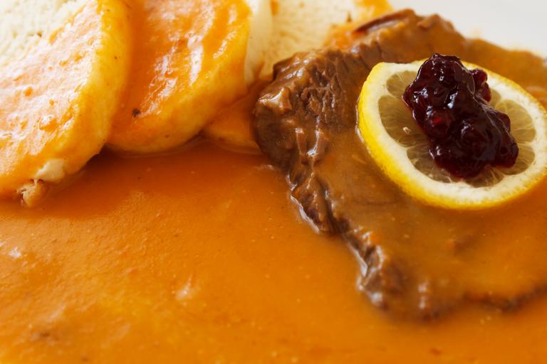 Keywords: cuisine delicious meat detail dinner dough dumpling food sirloin lunch meal nutrition cranberries cranberry tasty traditional czech sauce