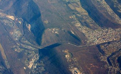 | Keywords: Cumberland Narrows air.jpg Cumberland Narrows a water gap facing northeast December 10 2006 Wills Mountain is at top Haystack Mountain Maryland is at bottom The anticlinal structure of the Tuscarora Formation sandstone layer at top and sides of the mountain is apparent in this photo w U S Route 40 Alternate and the w National Road historic Cumberland Road runs through the pass from and above w Cumberland Maryland as did the historic Baltimore and Ohio Railroad 's tracks to the Monongahela Valley in Pennsylvania passing through the Cumberland Narrows pass above Cumberland Maryland The Western Maryland Railroad also ran track through the gap 2006-12-10 ; 2009-06-02 Own Transferred from http //en wikipedia org en wikipedia Jstuby at http //en wikipedia org en wikipedia location possible en wikipedia Jstuby Original upload log page en wikipedia Cumberland_Narrows_air jpg 2009-06-02 07 33 Jstuby 850×520 106406 bytes <nowiki>Oblique air photo of Cumberland Narrows a water gap facing northeast December 10 2006 Wills Mountain is at top Haystack Mountain Maryland is at bottom </nowiki> Allegheny Mountains Anticlines Baltimore and Ohio Railroad Chessie System Conrail Cumberland Maryland Folds Geography of Maryland Mountain passes of the United States National Road Northeastern United States U S Route 40 in Maryland Visitor attractions in Maryland Visitor attractions in the United States Western Maryland Railway |