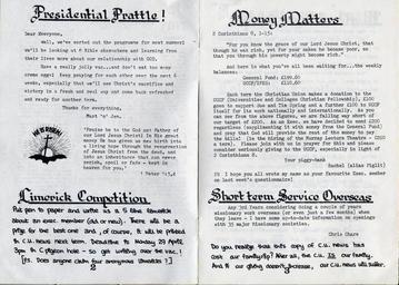 Keywords: cu christian union christianunion newsletter document 1986 akdone sucu text blackandwhite black and white Southampton University Christian Union newsletter from 1986 Southampton University Christian Union newsletter from 1986
