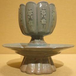 | Keywords: Cup and cup stand with chrysanthemum design from Korea, Honolulu Museum of Art.JPG en Cup and cup stand with chrysanthemum design from Korea Koryo 13th century stoneware with celadon glaze and black and white slip inlay Honolulu Museum of Art accessions 65 66 own Hiart photo 2015 Goryeo celadon in the Honolulu Museum of Art Cc-zero | ||||