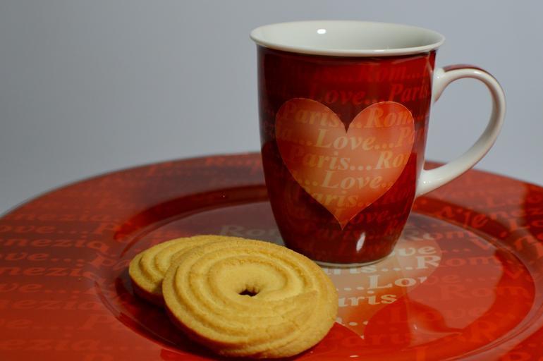 Keywords: cup heart romance valentine's day tableware coffee love plate pastries biscuit