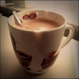 Keywords: cup porcelain coffee spoon foam layer table