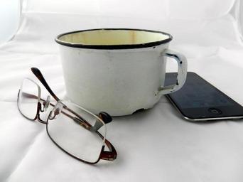 Keywords: cup sunglasses phone breakfast mobile phone