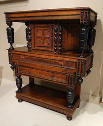 | Keywords: Cupboard, possibly by Emery Shop, probably Newbury, Massachusetts, c. 1680, oak with maple, black walnut, sycamore, poplar - Winterthur Museum - DSC01353.JPG en Exhibit in the Winterthur Museum New Castle County Delaware USA Photography was permitted in the museum without restriction This work is in the public domain because the artist died more than 70 years ago 2013-05-08 10 45 42 own Daderot cc-zero Sideboards Furniture in Winterthur Museum Uploaded with UploadWizard | ||||