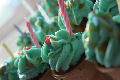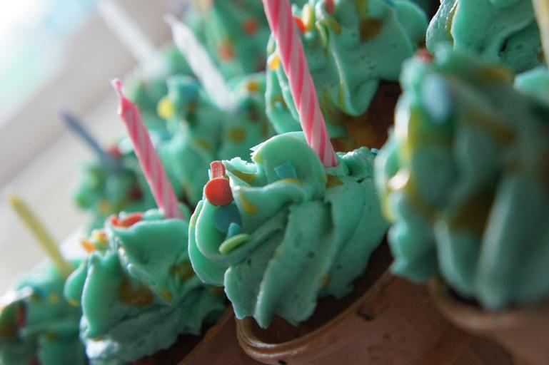 Keywords: cupcake cupcakes dessert cake food sweet baked frosting green party icing celebration birthday happy birthday decorated frosted delicious unhealthy fattening cup-cake calories pastry iced snack buttercream treat