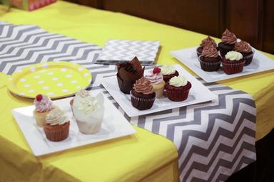 Keywords: cupcakes decorated icing food dessert sweet baked plates frosted chocolate white party celebration sugar holiday treat assortment delicious