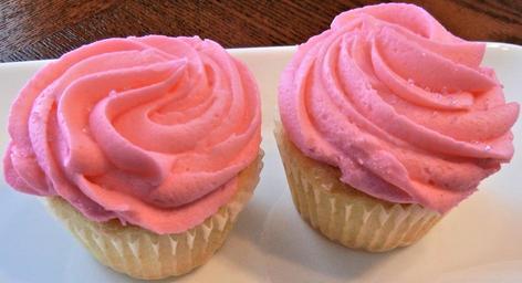 Keywords: cupcakes pink frosting white cake food