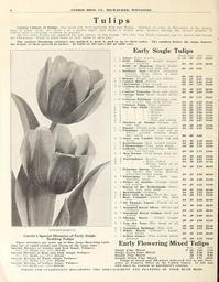 | Keywords: Currie's bulbs and plants (Page 4) (16436853882).jpg CURRIE BROS CO MILWAUKEE WISCONSIN <br> Tulips <br> c 6 <br> b 9 <br> d 10 <br> c 10 <br> a <br> 6 <br> a <br> 6 <br> a <br> 6 <br> a <br> 6 <br> c <br> 9 <br> ach <br> Doz <br> 100 <br> 1000 <br> 03 <br> 30 <br> 1 75 <br> 13 00 <br> 04 <br> 40 <br> 2 50 <br> 20 00 <br> OS <br> SO <br> 0 00 <br> OS <br> SO <br> 0 75 <br> 04 <br> 35 <br> 2 25 <br> 1S C0 <br> 03 <br> 30 <br> 2 00 <br> 15 00' <br> 03 <br> 30 <br> 1 75 <br> 13 00 <br> 04 <br> 40 <br> 2 75 <br> 22 00 <br> 03 <br> 30 <br> 2 00 <br> 15 00 <br> 03 <br> 30 <br> 1 75 <br> 13 00 <br> 04 <br> 35 <br> 2 25 <br> 1S 00 <br> 03 <br> 30 <br> 1 75 <br> 13 00 <br> 04 <br> 35 <br> 2 25 <br> 1S 00 <br> 03 <br> 30 <br> 2 25 <br> 16 00 <br> 03 <br> 30 <br> 2 00 <br> 15 00 <br> 04 <br> 35 <br> 2 25 <br> 1S 0O <br> 04 <br> 35 <br> 2 25 <br> 1S 00 <br> 03 <br> 30 <br> 2 25 <br> 16 00 <br> 03 <br> 30 <br> 2 00 <br> 15 00 <br> 04 <br> 35 <br> 2 25 <br> 18 00 <br> Garden Culture of Tulips Any good soil well enriched will suit Tulips October or early in November is the proper <br> time to plant them Set them 4 or 5 inches apart and about 3 inches deep Protect during the severe months of <br> winter with a covering of straw or manure <br> All the early Tulips are adapted for pot culture in the house The Due Tan Tholl varieties can be forced into bloom <br> for Christmas Plant at least three or four bulbs in each pot <br> The earliest blooming varieties are marked a next b and so on in their order The number before the name denotes <br> the height of their growth in inches 25 bulbs at 100 rate; 250 at 1 000 rate <br> Early Single Tulips <br> E <br> Artus Pure scarlet ยง <br> Belle Alliance Bright scarlet <br> sweet scented <br> Bride of Haarlem Silver bright <br> cherry feathered with red <br> Brilliant Star Bright vermilion <br> scarlet black center a most <br> beautiful tulip <br> Brutus Bright red and yellow <br> Canary Bird Yellow <br> Chrysolora Fine yellow <br> Couleur de Cardinal Bronze scar- <br> let <br> Couleur Ponceau Rose and white <br> Cottage Maid Rose border white <br> true ' <br> Crimson Brilliant Dazzling crim- <br> son scarlet fine early forcer <br> Crimson King Fine crimson <br> Due Van Tholl Scarlet <br> Crimson <br> White <br> Yellow <br> Rose <br> ' Red and yellow <br> Duchess de Parma Orange yel- <br> low fine <br> Dusart Finest large dark scarlet <br> Flamingo Brilliant rosy red on <br> white ground flowers large <br> fine forcer <br> Joost von Vondel Rosy red and <br> white <br> Keiserkroon Red bord'd yellow <br> LTmmaculee Fine pure white <br> LaReine Queen Victoria White <br> very fine forcing <br> Mon Tresor Very large deep yel- <br> low <br> Pottebakker Scarlet <br> Pure yellow <br> White finest of all <br> whites <br> Primrose Queen -Unique sport of <br> La Reine fine form delicate <br> primrose-yellow shade <br> Proserpine Rich dark rose <br> splendid large <br> Prince of Austria Orange shad- <br> ed scarlet <br> Queen of the Netherlands Beau- <br> tiful soft rosy pink <br> Rembrandt Crimson <br> Rose Gris de Lin Very fine rose <br> Rose Luisante Extra fine deep <br> rose <br> Sir Thomas Lipton Finest of all <br> scarlets <br> Standard Royal Silver White and <br> crimson _ <br> Standard Royal Golden Red and <br> yellow <br> Thomas Moore Bright orange <br> scarlet <br> Van der Neer The finest of all <br> violets <br> Vermilion Brilliant Fine red <br> White Hawk Albion Large <br> pure white <br> Yellow Prince Fine yellow sweet <br> 06 60 4 50 <br> KEISERKROON <br> Currie's Special Mixtures of Early Single <br> Bedding Tulips <br> These mixtures are made up of fine large flowering sorts <br> that are of equal height and bloom at the same time <br> Special Mixture of Scarlet and Red Single Tulips <br> Per'100 2 25; per 1000 18 00 <br> Special Mixture of Rose and Pink Single Tulips <br> Per 100 2 00; per 1000 15 00 <br> Special Mixture of White Single Tulips <br> Per 100 1 75; per 1000 13 00 <br> ; Special Mixture of Yellow Single Tulips <br> Per 100 1 75; per 1000 13 00 <br> WRITE FOR SUGGESTIONS REGARDING THE ARIti <br> d 7 <br> d 7 <br> c 12 <br> b 7 <br> b 7 <br> c 9 <br> 04 <br> 03 <br> 03 <br> 35 <br> 30 <br> 30 <br> 2 50 <br> 2 25 <br> 1 75 <br> 20 00 <br> 16 00 <br> 13 00 <br> 03 <br> 30 <br> 1 75 <br> 13 00 <br> 04 <br> 04 <br> 04 <br> 35 <br> 35 <br> 40 <br> 2 25 <br> 2 25 <br> 2 65 <br> 1S 00 <br> 18 00 <br> 21 00 <br> 04 35 2 50 20 00 <br> 04 <br> 35 <br> 2 50 <br> 20 00 <br> 04 <br> 40 <br> 3 00 <br> 25 00 <br> 04 <br> 35 <br> 2 25 <br> 18 00 <br> 04 <br> 04 <br> 03 <br> 35 <br> 40 <br> 30 <br> 2 50 <br> 2 75 <br> 1 75 <br> 20 00 <br> 22 00 <br> 13 00 <br> 04 <br> 35 <br> 2 50 <br> 20 00 <br> 04 <br> 40 <br> 3 00 <br> 26 00 <br> 04 <br> 35 <br> 2 25 <br> 20 00 <br> 04 <br> 40 <br> 3 00 <br> 25 00 <br> 03 <br> 30 <br> 2 00 <br> 15 00 <br> 06 <br> 04 <br> 60 <br> 40 <br> 4 00 <br> 2 75 <br> 32 00 <br> 22 00 <br> scented <br> 04 35 2 50 20 00 <br> 03 30 1 75 13 00 <br> Early Flowering Mixed Tulips <br> Doz <br> 100 1000 <br> Single Fine Mixed 20 1 25 7 50 <br> Single Extra Fine Mixed 25 1 50 9 00 <br> Double Fine Mixed 20 1 50 ยป 00 <br> Double Extra Fine Mixed 25 1 75 10 00 <br> Tulips at ilozcn and 100 prices delivered free to any Post- <br> office or Express Office in the United States At 100 and <br> 100O rates by express at purchaser's expense <br> NGEMENT AND PLANTING OF YOUR BULB BEDS 42159888 132797 65947 Page 4 Text http //www biodiversitylibrary org/page/42159888 1913 10 5962/bhl title 65947 Currie Brothers Company ; Henry G Gilbert Nursery and Seed Trade Catalog Collection NameFound Brutus Biodiversity Heritage Library Currie's bulbs and plants autumn 1913 new album Garden Stories Bulbs Plants Catalogs Flowers Nurseries Horticulture Plants Ornamental Seeds U S Department of Agriculture National Agricultural Library bhl page 42159888 dc identifier http //biodiversitylibrary org/page/42159888 bhlGardenStories tulips BHLinbloom bulbs pla