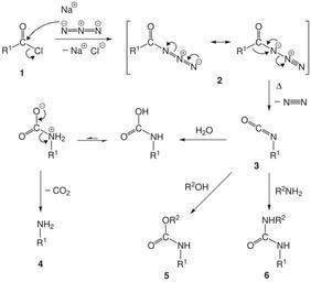 Keywords: Curtius rearrangement mechanism v1.svg en Mechanism of the Curtius rearrangement de Mechanismus der Curtius-Reaktion selbst erstellt mit ChemBioOffice 11 LinuxCLP 2011-08-12 Cc-zero Curtius rearrangement