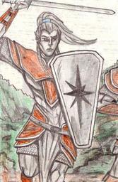 Keywords: Curufin.JPG en Curufin cropped from File Curufin and Celegorm attack jpg Carmen Haberichter 2008 Middle-earth Elves