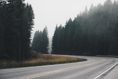 Keywords: fog haze forest trees road curve street sky outdoor public domain publicdomain freeway License: Public Domain Dedication (CC0) Source: Unsplash License: Public Domain Dedication (CC0) Source: Unsplash