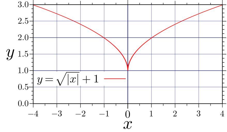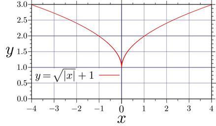 | Keywords: Cusp at (0,1).svg en Function displaying a cusp at 0 1 See below for details it Esempio di funzione con punto di cuspide in x 0 self-made Inkscape 10/09/2007 Inductiveload Function displaying a cusp at 0 1 - Equation <math>y \sqrt x +1</math> - Co-ordinate System Cartesian - X Range -4 4 - Y Range -0 3 - Derivative <math>\frac dy dx \frac 1 2 \sqrt x </math> - 2 - colspan 2 Points of Interest in this Range - Minima <math>\left 0 1 \right \ </math> - Cusps <math>\left 0 1 \right \ </math> - Derivatives at Cusp <math>\lim_ x \to 0 + f' x +\infty</math> <math> \lim_ x \to 0 - f' x -\infty</math> Functions Cusps |